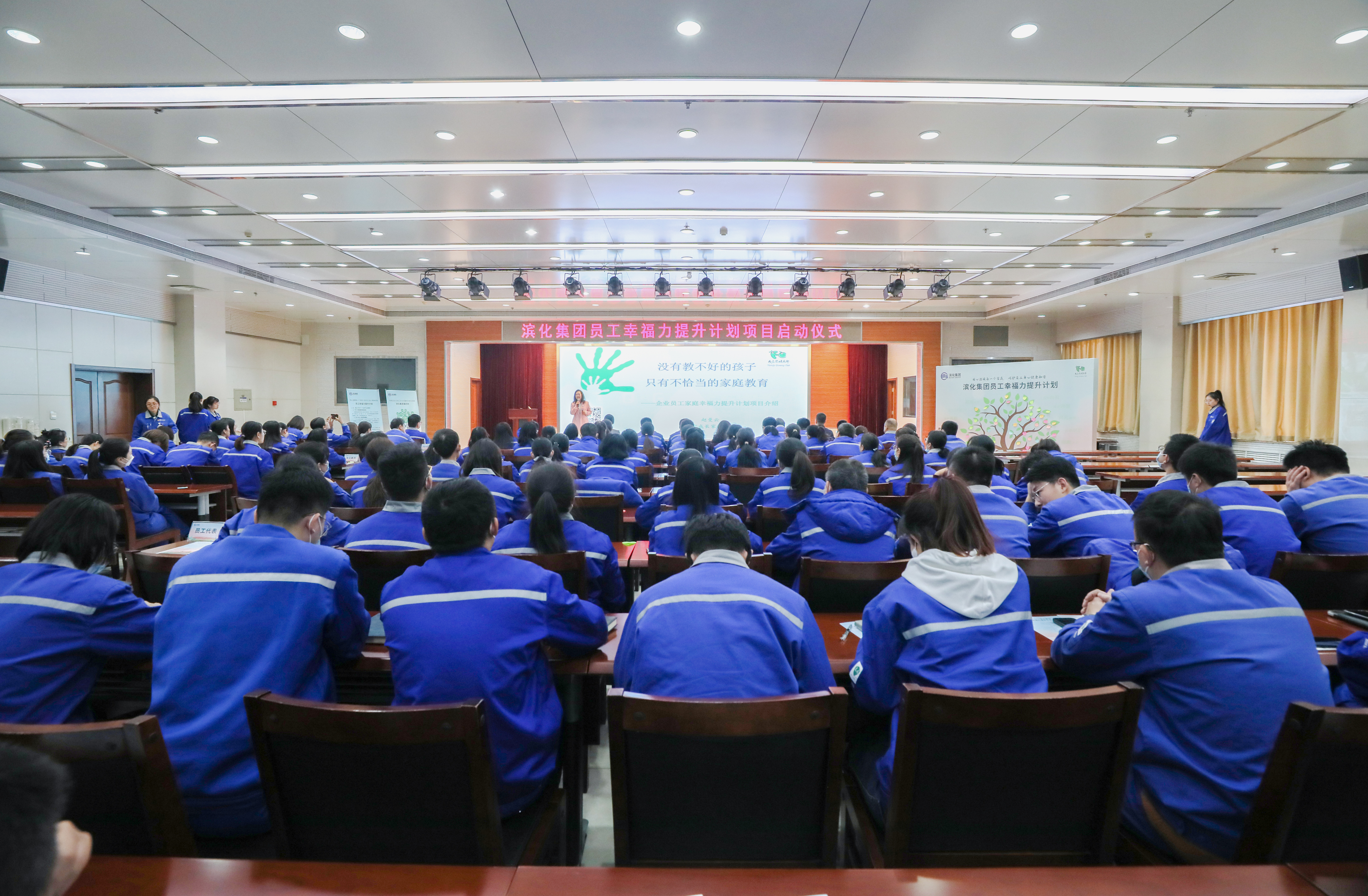 啟動(dòng)儀式上,于江董事長(zhǎng)致辭。他表示,“過去一年,公司陸續(xù)推出陪考假、子女獎(jiǎng)學(xué)金、父母生日假、寒暑假托管班等一系列福利政策,幸福濱化人APP全新上線,疫情期間又為員工提供了送藥、隔離等關(guān)愛服務(wù)。今天,我們啟動(dòng)員工幸福力提升計(jì)劃項(xiàng)目,就是希望通過一系列幸福濱化建設(shè)的有力措施,讓所有濱化人都心懷溫暖,有力前行。”