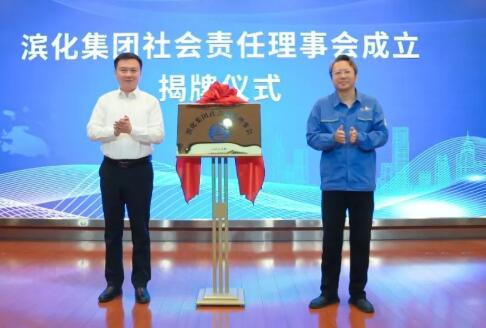 5月23日,濱化集團社會責任理事會成立暨聘任付同雪同志為榮譽理事儀式在集團303會議室舉行。濱州市委常委、副市長屈躍寬,濱化集團董事長于江為理事會成立揭牌。